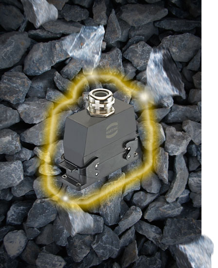 A major new product is the Han® M Plus range of connectors, which incorporate effective protection against extreme environmental influences through the use of an additional polyurethane coating. This new coating not only increases the connectors’ impact resistance but also protects them from extreme mechanical and chemical influences.